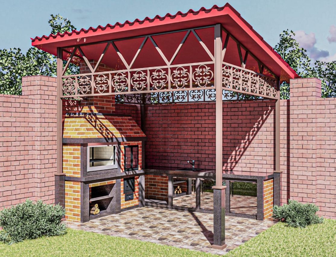 Барбекю под навесом становится полноценной зоной отдыха, которая служит долгие годы.